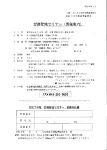 労務管理セミナー 開催案内 2025年12月17日 最終更新日時 : 2025年12月17日 kawaguchi-rouki 日時:令和8年2月18日(水) 会場:川口労働基準監督署 会議室 川口市川口2-10-2(川口駅西口から徒歩7分) 労務管理セミナー 開催案内ダウンロード